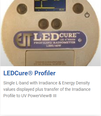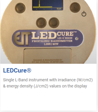 Each of EIT LLC’s L-Bands (L-365, L-385, L-395 and L-405) has an optic response and dynamic range optimized for LEDs. Our patented Total Measured Optic Response in which ALL optics in the instrument are included in the instrument response result in better performance and repeatability; unit-to-unit, run-to-run and source-to-source.