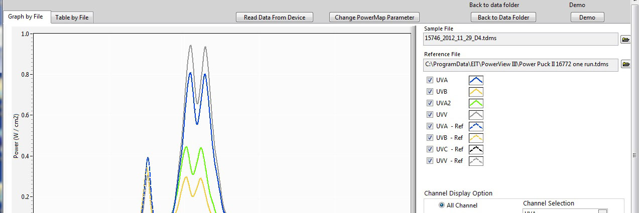 EIT LLC’s UV PowerView Software III is used to transfer and analyze the data collected by EIT’s MAP (PowerMAP® II/LEDMap™) and PROFILER (LEDCure®, Power Puck® II and UviCure® Plus II) radiometers.